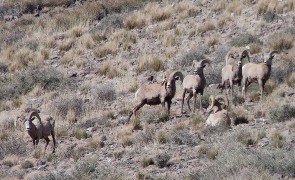 | Top: participants in the CIR Death Valley tour pose for a photo at Aguereberry Point, a spectacular view point above Death Valley. Bottom: big-horned sheep seen on the 2012 CIR Death Valley tour. |